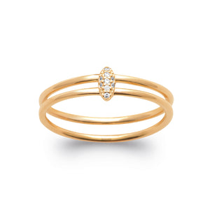 This double band ring features two sleek, parallel bands that wrap around the finger, creating a bold yet elegant look. The design’s minimalist lines are enhanced by the dual bands, offering a sense of balance and symmetry that feels both modern and timeless. Perfect for stacking with other rings or wearing solo for a clean, contemporary statement, the ring’s simplicity allows it to complement a variety of styles. Whether dressed up or down, its understated elegance adds a touch of sophistication to any outfit.