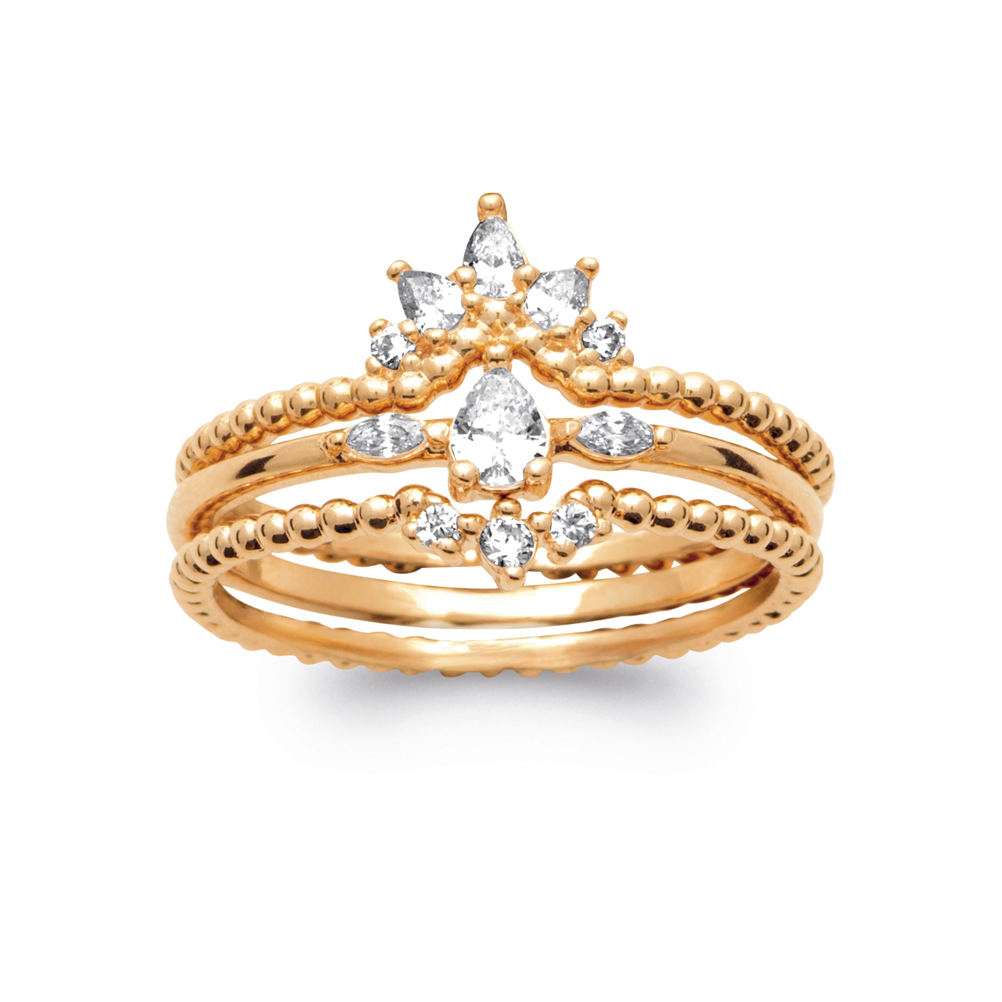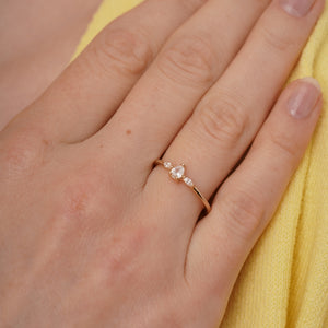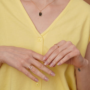 This delicate stacking ring is the perfect balance of subtle elegance and sparkling charm. Featuring a row of tiny cubic zirconias along a slim, polished band, it catches the light with a soft, refined shimmer. Its minimalist design makes it ideal for layering with other rings, allowing you to create a personalized stack, or wearing alone for a delicate, understated touch. Whether paired with other bands or standing solo, it’s a versatile piece that adds just the right amount of sparkle to any look.