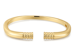 This sleek bangle features a convenient hinge opening, making it easy to slip on and off while maintaining a polished, continuous look around the wrist. Its smooth, clean design gives it a modern, versatile feel that works well alone or stacked with other pieces. Effortlessly stylish and practical, it’s the kind of accessory that combines everyday ease with a subtle touch of sophistication.