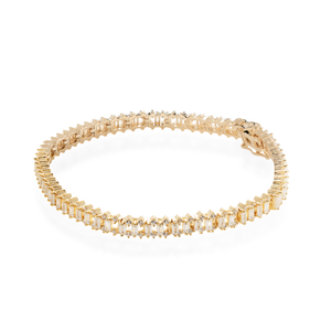 The Stellar Bracelet features an 18k gold plate finish that catches the light with every movement. Its sparkling design makes it a versatile accessory, whether worn solo or paired in an arm stack. This bracelet adds a subtle wow factor to your look, enhancing your style with ease and confidence.